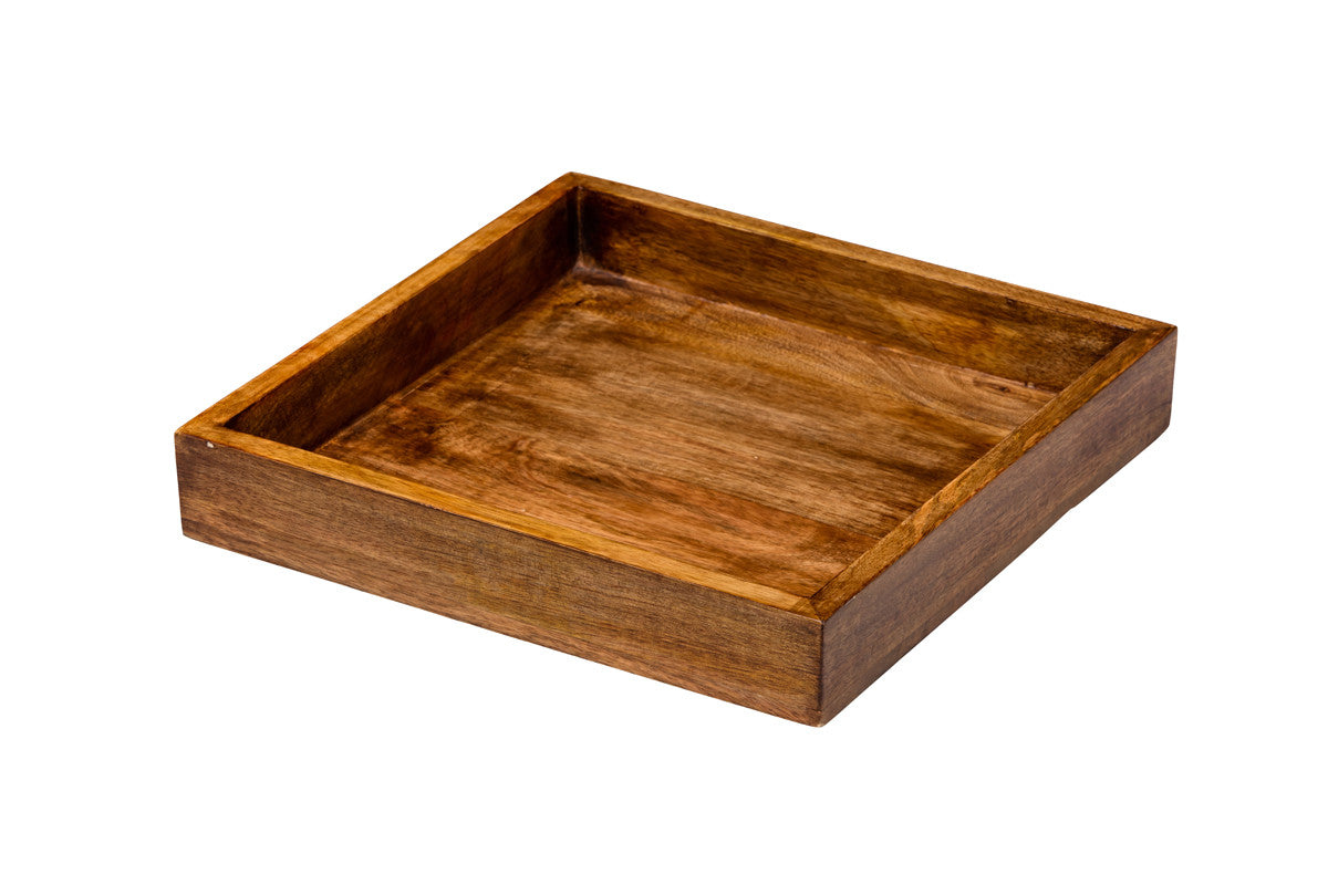 Prato retangular de servir em madeira de mangueira, 30x30x5 cm