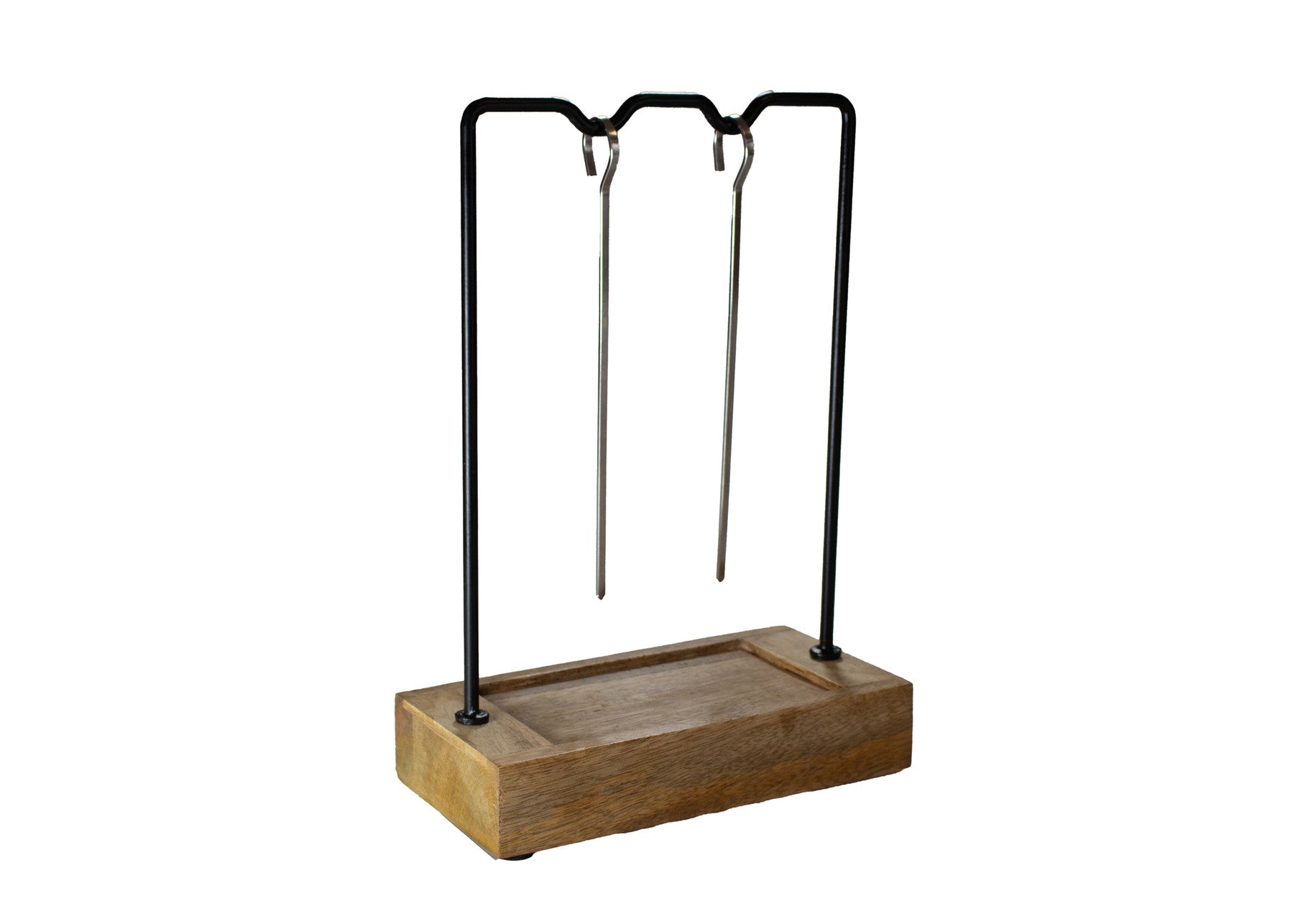 Suporte para espetos, 2 peças, madeira de mangueira, sem espetos.