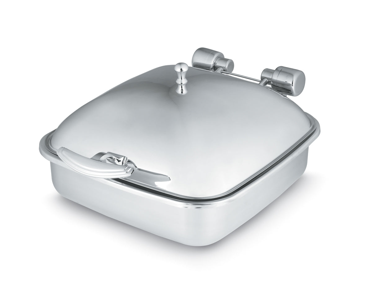 Chafer de indução em® aço inoxidável Intrigue quadrado sólido de 6 quartos, com acabamento em aço inoxidável e tabuleiro de comida em aço inoxidável