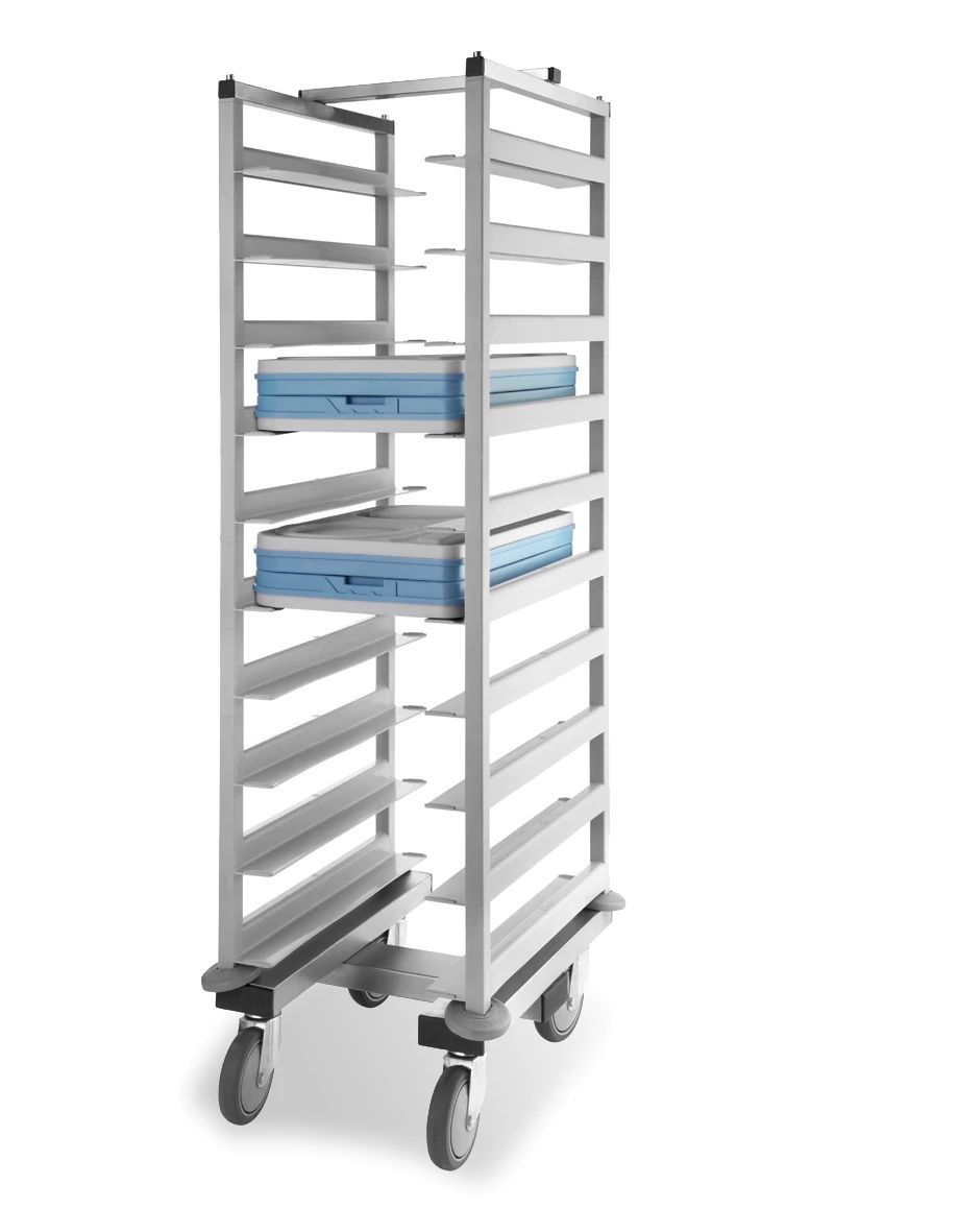 Carrinho isotérmico de bandeja em aço inoxidável com dez carris de 55 x 37 1/2 cm de plástico