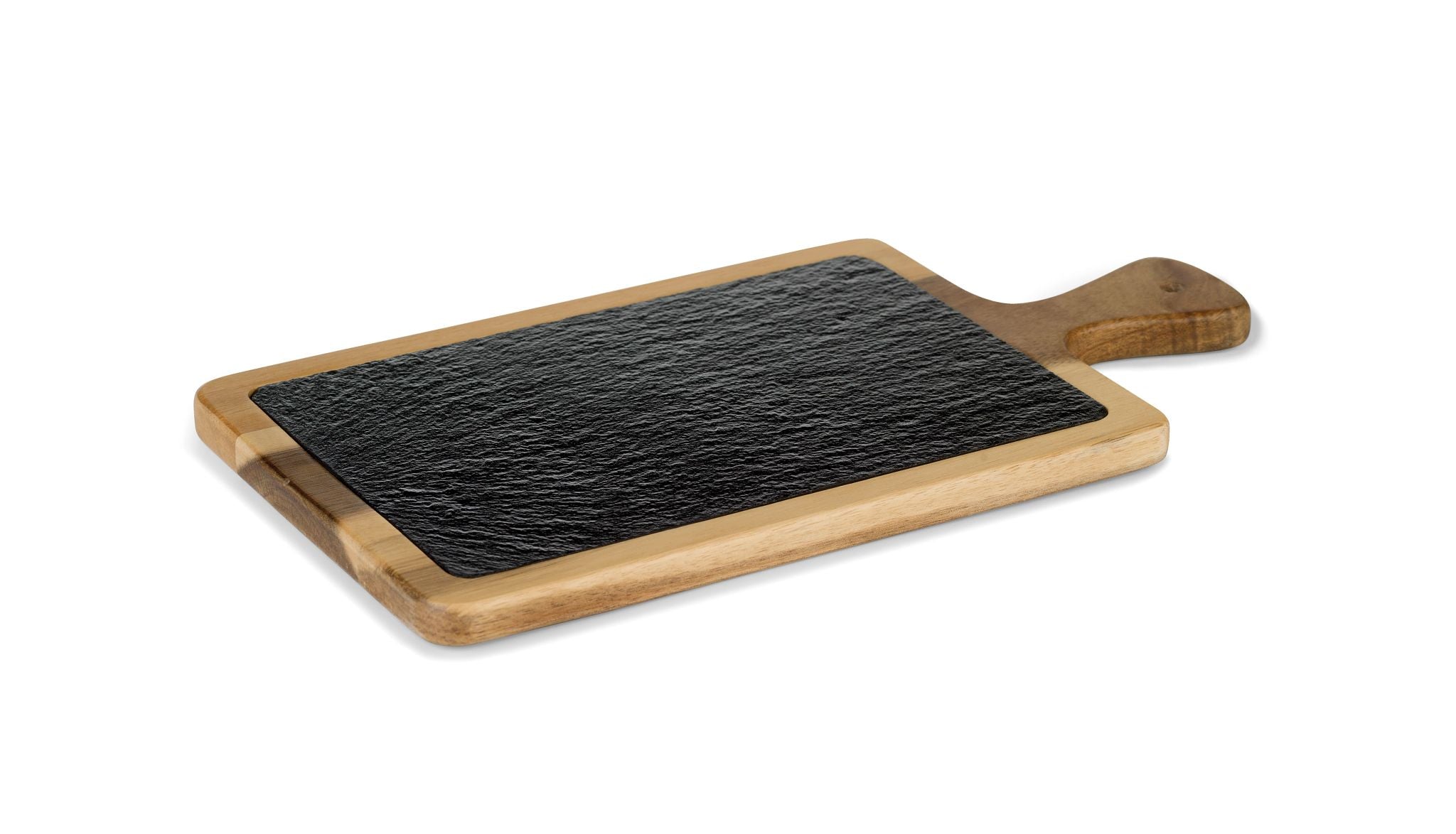 Tábua retangular de 26 x 18 cm ardósia preta e madeira de acácia com cabo