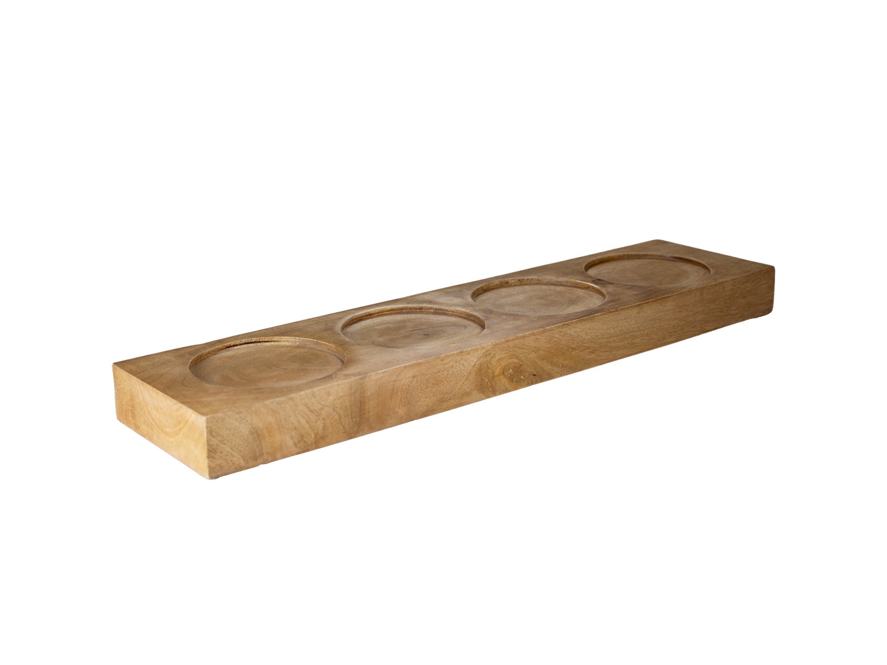 Bandeja para talheres com 4 compartimentos, madeira de mangueira, 57 x 28 x 15 cm