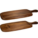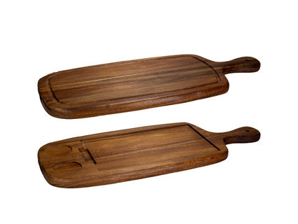 Tábua de acácia com 2 incrustações e alça, 50 x 23 x 2 cm