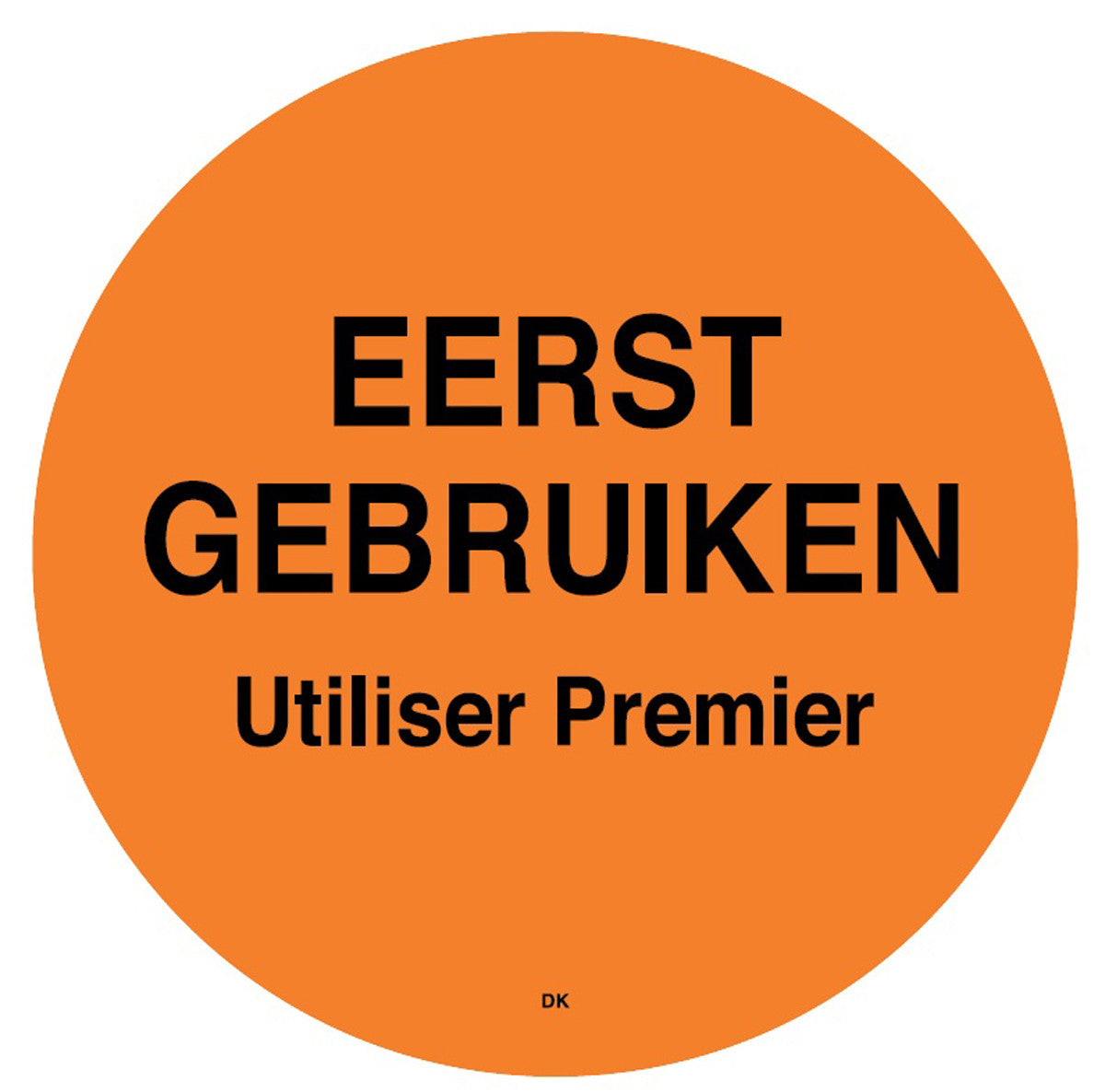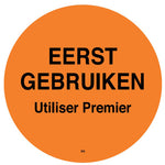 Adesivo permanente com a inscrição "usar primeiro" em holandês. 500 unidades por rolo.