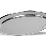 Tabuleiro oval económico de 40 x 26 1/2 cm em aço inoxidável com borda enrolada em acabamento espelhado