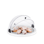 Vitrine redonda de plástico de 38 centímetros com base branca e tampa com tampa de rolo