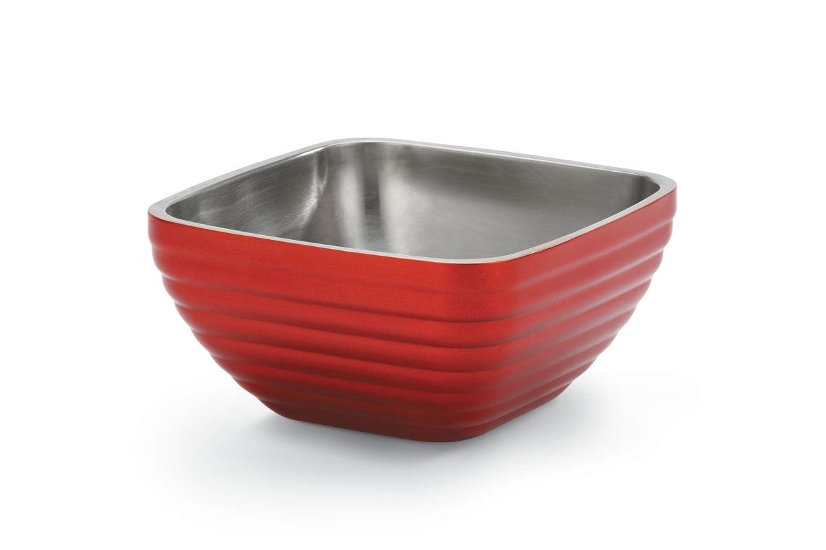 Taça de servir quadrada de dupla parede isolante de 3 1/5 quartos, com padrão de colmeia em vermelho deslumbrante