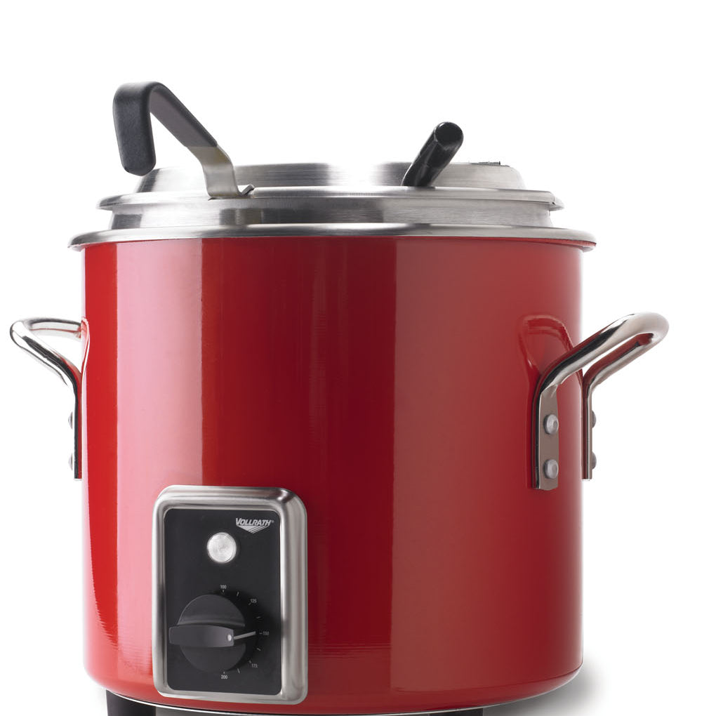 Chaleira de sopa de 10 litros de alumínio 230 volts com revestimento epóxi preto e tampa em aço inoxidável