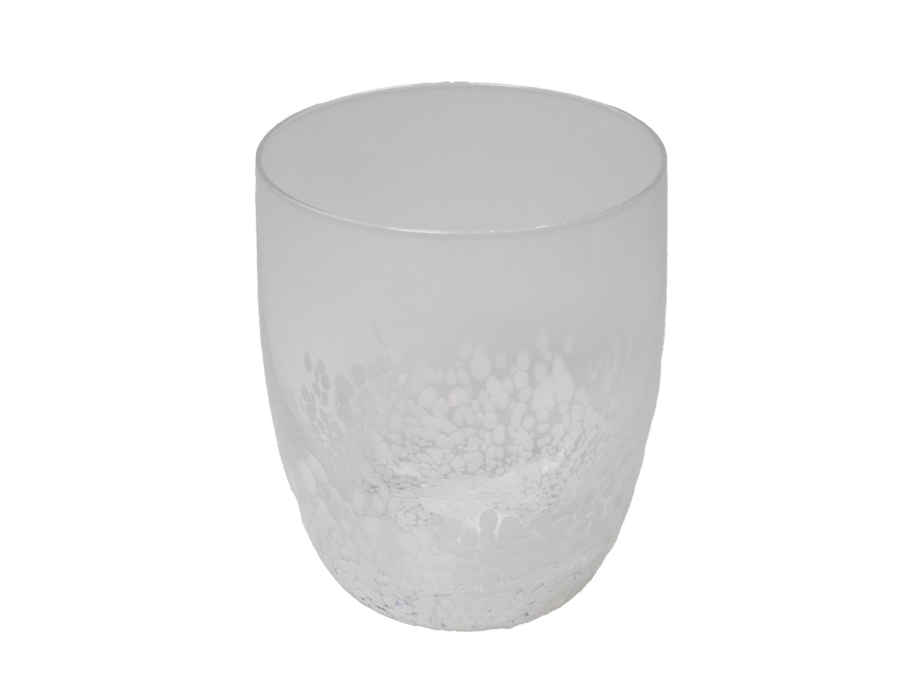 Copo oval transparente com manchas brancas
