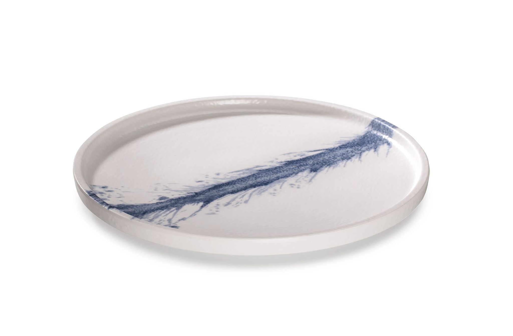 Prato de Coleção Mediterrânea 22 centímetros de melamina branca com borda azul