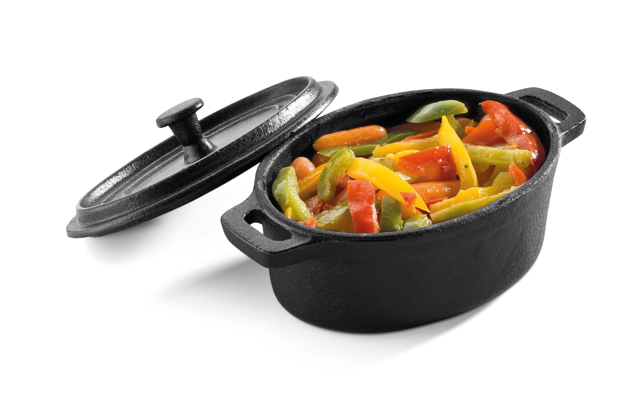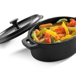 Mini tabuleiro oval de caçarola de 12,5 x 9,3 cm de ferro fundido com tampa