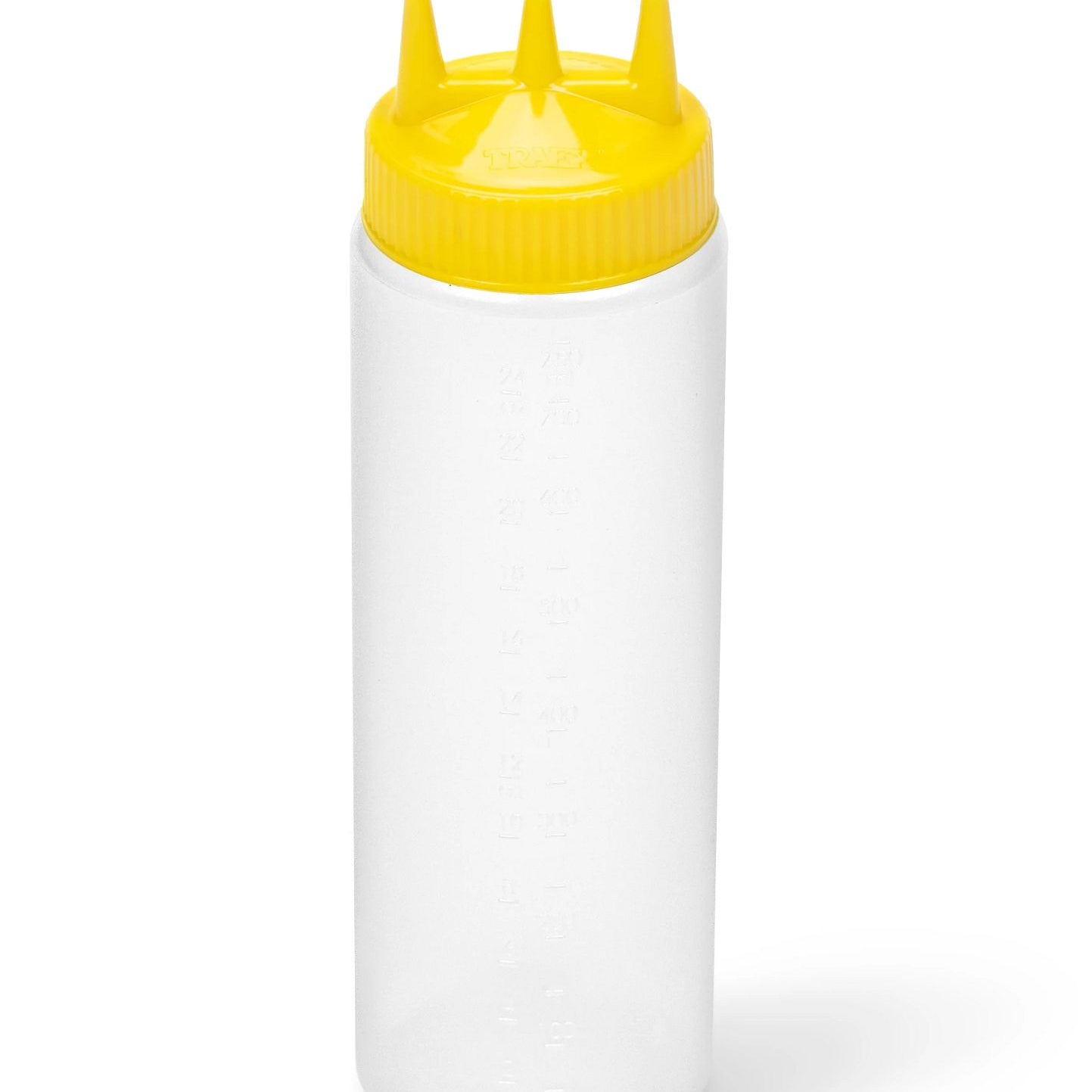 Dispensador transparente de espremer Traex® Color-Mate Tri Tip™ de 24 onças com boca larga e tampa amarela