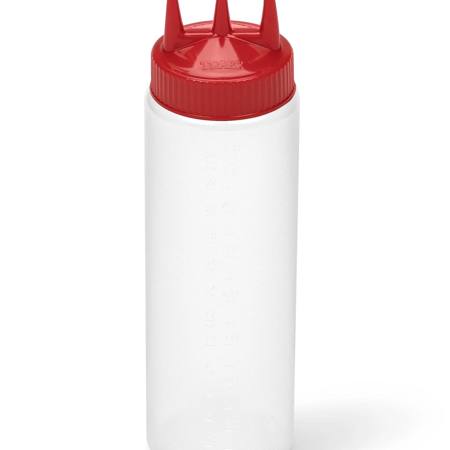 Dispensador transparente de espremer Traex® Color-Mate Tri Tip™ de boca larga de 24 onças com tampa vermelha