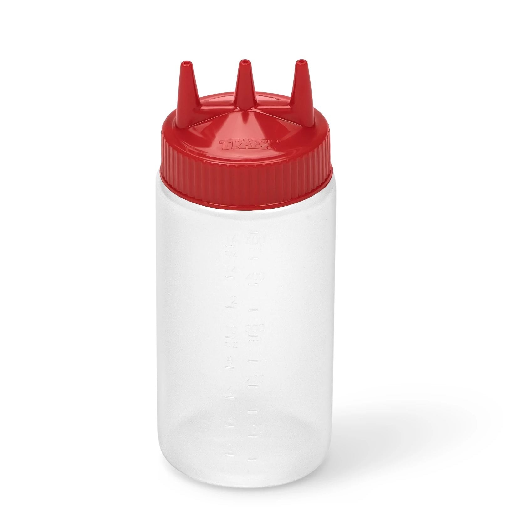 Dispensador transparente de espremer Traex® Color-Mate Tri™ Tip de 16 onças com boca larga e tampa vermelha