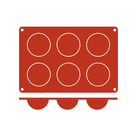 Silicone gastronorm de meia-esfera de 1/3 para seis meias-esferas de 7 x 3 1/2 cm em vermelho