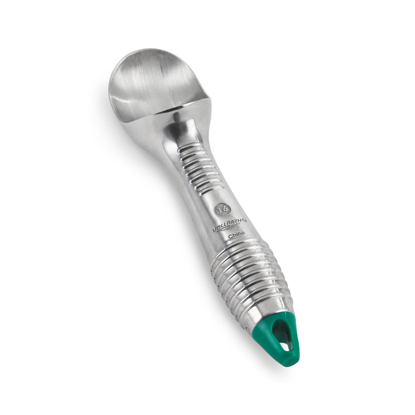 Uma colher de gelado de alumínio de 2 1/2 onças com extremidade verde